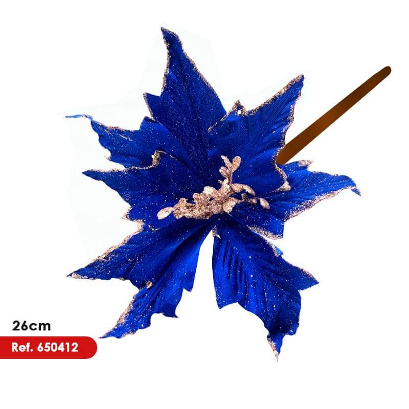 Flor artificial Poinsettia color Azul 16cm aprox