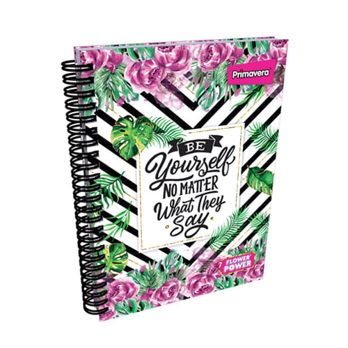 Agenda Argollada pasta dura 5 MATERIAS FEMENINO pequeño FLOWER POWER BE YOURSELF CUADRICULADO